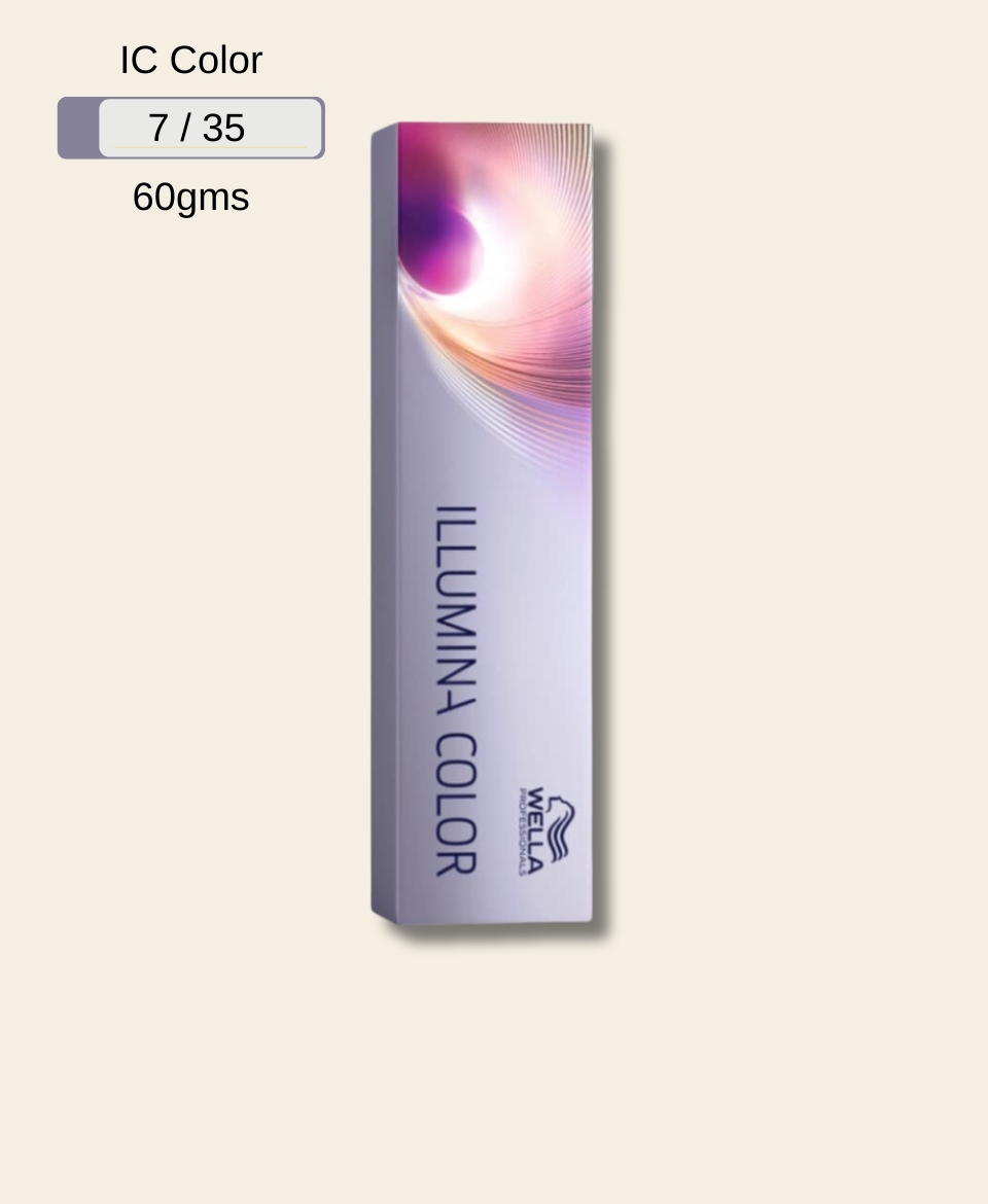 Mix Illumina Color 7/35 with Welloxon Perfect developer according to the instructions provided in the product leaflet. Apply to hair and develop according to the recommended time. Rinse thoroughly and condition with a color-protecting conditioner.