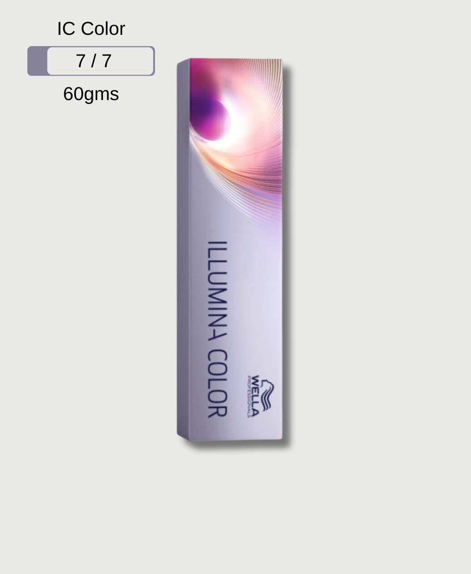 Mix Illumina Color 7/7 with Welloxon Perfect developer according to the instructions provided in the product leaflet. Apply to hair and develop according to the recommended time. Rinse thoroughly and condition with a color-protecting conditioner.