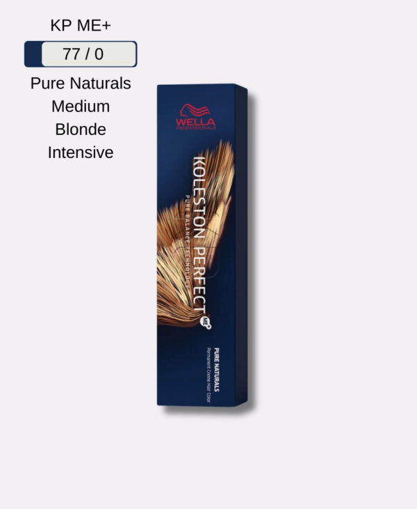Achieve an intense and captivating medium blonde with Wella Professionals Koleston Perfect ME+ 77/0 Medium Blonde Intensive. This high-performance permanent hair color delivers a rich, vibrant blonde with amplified color intensity, providing exceptional coverage and shine. Its advanced formula provides up to 100% grey/white hair coverage and long-lasting color, making it ideal for those seeking a bold and expressive medium blonde shade.
