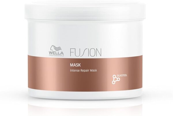 • A luxurious creamy hair mask that helps to repair and protect against breakage.With intense conditioning ingredients and amino acids, the Wella Professionals Fusion Intense Repair Mask helps to protect hair against future mechanical damage and breakage that may occur during combing. Wella Intense Repair hair mask formulated with silk amino acids leaves hair feeling cared and helps to increase resilience against breakage.